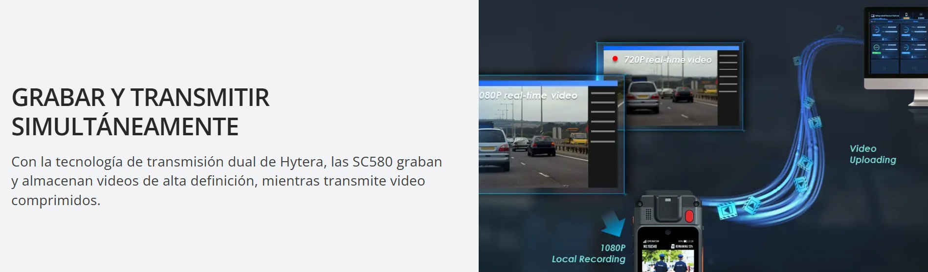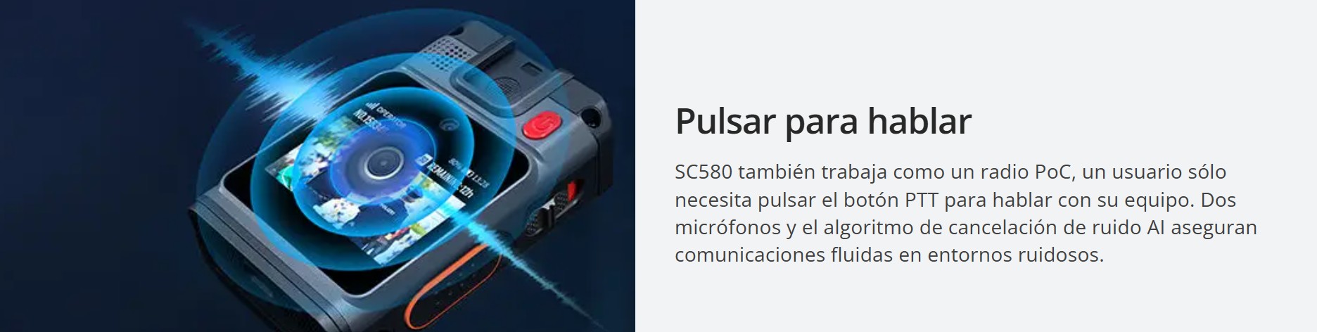 Además de capturar video, la SC580 funciona como una radio Push-to-Talk sobre red celular, lo que permite comunicación instantánea con personal de seguridad o autoridades, sin necesidad de equipos adicionales.